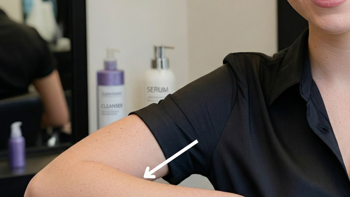 Voor een huidtest verzamel je eerst alle chemische producten die je van plan bent te gebruiken. Kies vervolgens een geschikte testplek op de huid van de klant. De meest gebruikte en geschikte plekken zijn achter het oor bij de haarlijn in de nek, of aan de binnenkant van de onderarm, ongeveer vijf centimeter onder de elleboogplooi. Deze plekken zijn relatief onopvallend en goed bereikbaar voor controle. Maak de gekozen huidplek voorzichtig schoon met milde zeep en water en droog deze goed af voor een betrouwbare test.