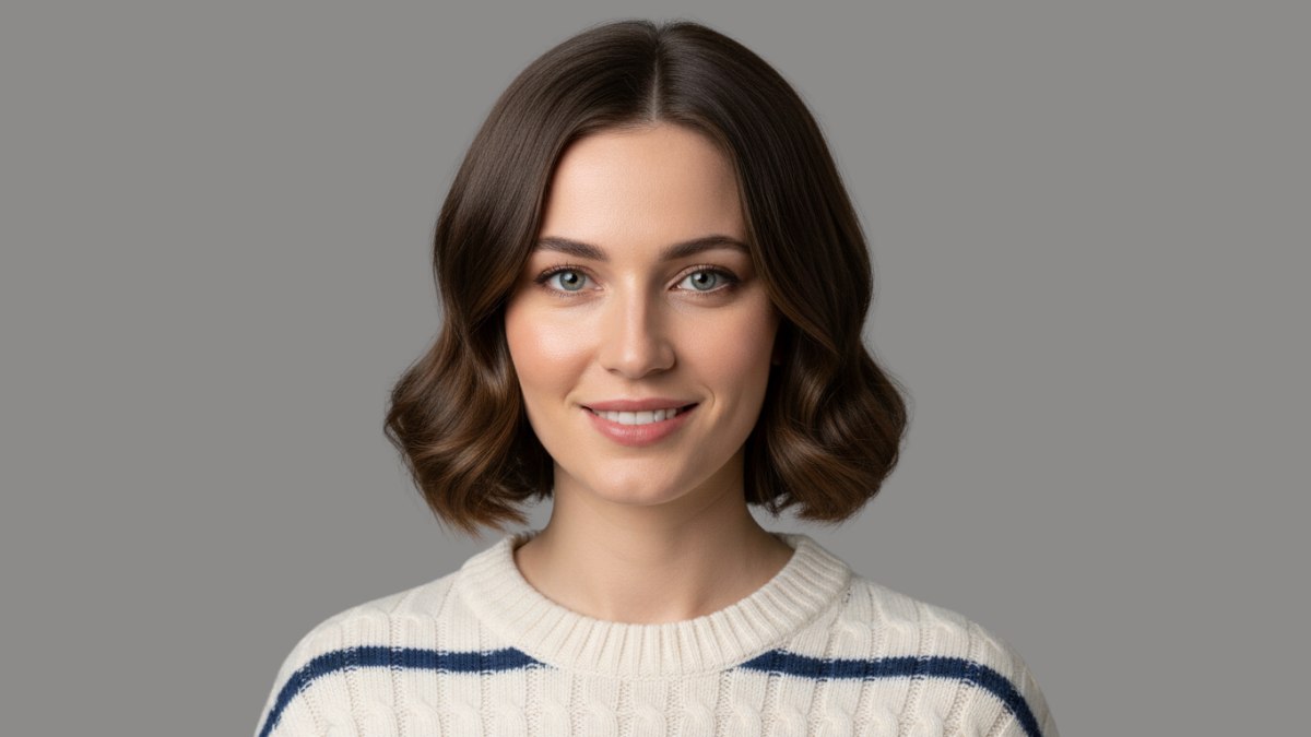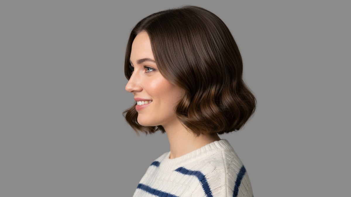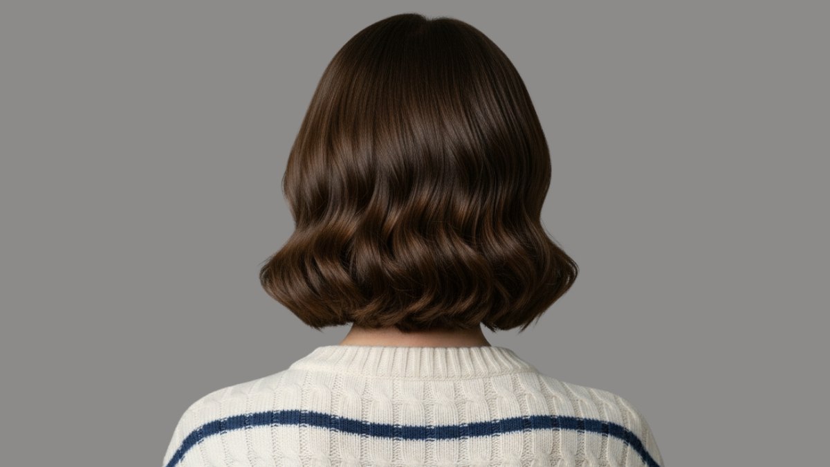 Dit kapsel laat een golvende bob zien die halverwege de nek valt en zo een perfect uitgebalanceerd silhouet vormt dat het gezicht vanuit elke hoek flatteert. De coupe heeft zachte lagen die voor beweging zorgen, waardoor het haar op natuurlijke wijze S-vormige golven vormt.