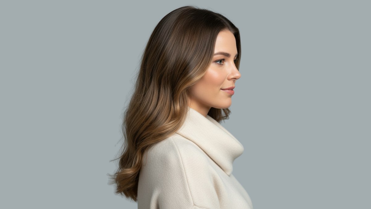 Dit lange kapsel is een ode aan natuurlijke schoonheid en moderne kleurtechnieken, met golven die elegant langs de schouders naar beneden vallen.