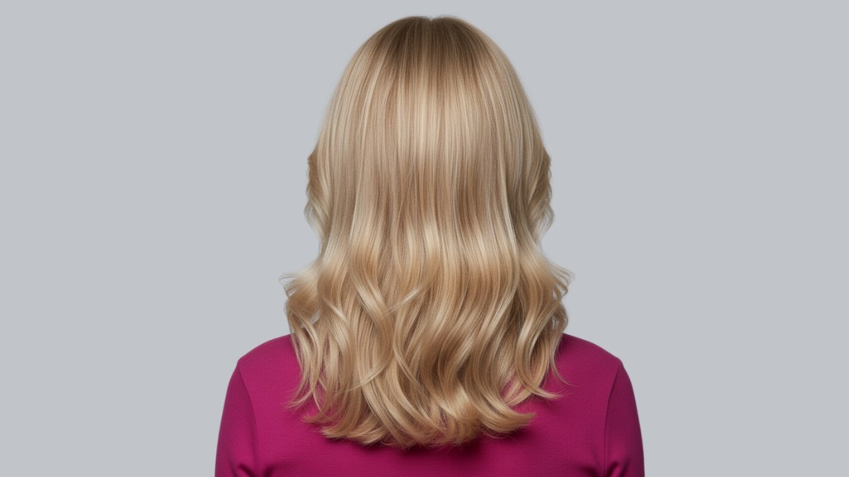 Deze blonde look draait volledig om luxe, dimensionale kleur en perfect gevormde golven. Het haar is geknipt in lange, gezicht-omlijstende lagen met een subtiel curtain-effect aan de voorkant, waardoor er een moderne, zachtere variant van een gordijnpony ontstaat.