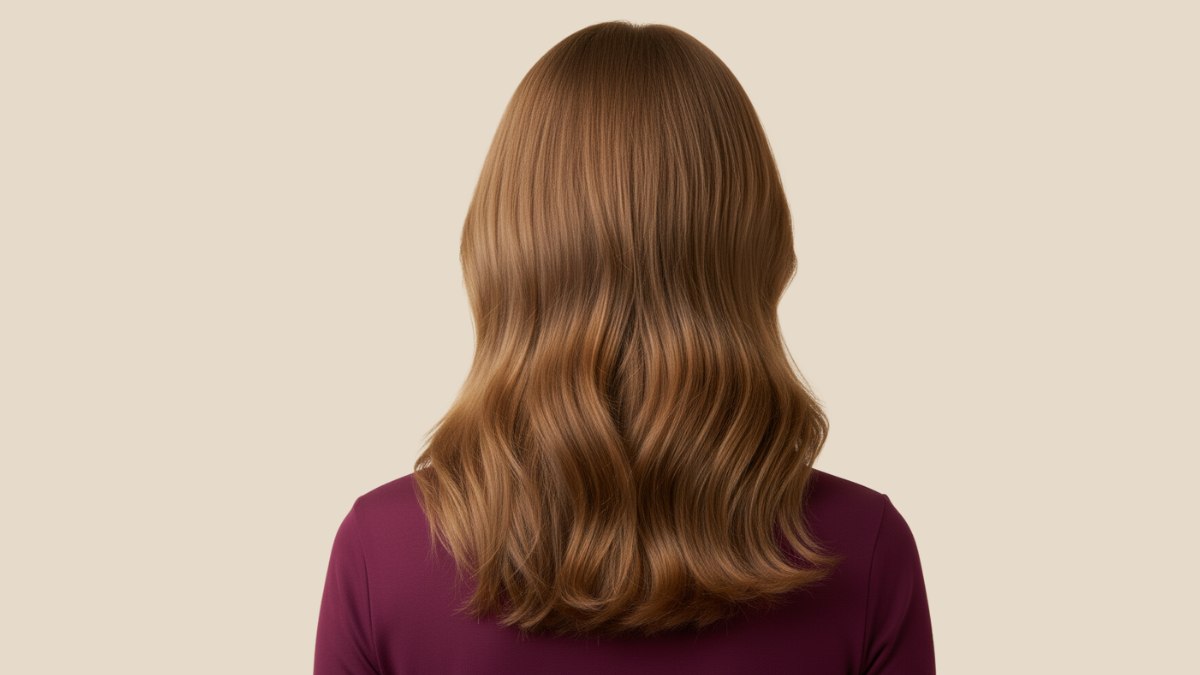 De styling is ontspannen en soepel, waarschijnlijk bereikt door een grote krultang of een föhn met ronde borstel, en daarna licht losgewerkt voor een nonchalante textuur. De golven beginnen halverwege het haar, zodat de aanzet glad blijft en de algehele vorm eerder verlengd dan overdreven volumineus oogt.