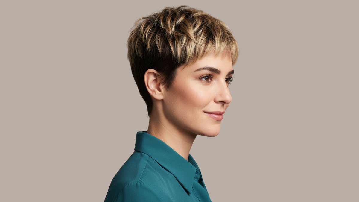 Dit prachtige korte kapsel vindt de perfecte balans tussen gestructureerd en zacht, mannelijk en vrouwelijk. De coupe heeft veel textuur en voldoende lengte bovenop en bij de kruin, wat veel stylingmogelijkheden en beweging oplevert.