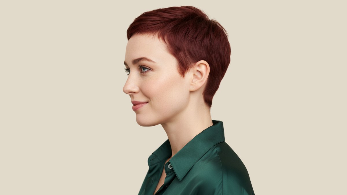 Wat dit korte kapsel onderscheidt, is de aandacht voor detail in de kniptechniek. De overgang van nek naar kruin is met precisie uitgevoerd, waardoor een vloeiende, afgeronde vorm ontstaat die het hoofd flatteert. De bakkebaarden zijn zeer kort en strak gehouden, wat de kaaklijn benadrukt en de gelaatstrekken extra aandacht geeft.