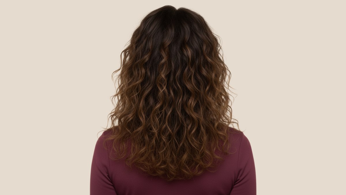 De styling lijkt gedaan met krulversterkende producten die waarschijnlijk op vochtig haar zijn aangebracht, waarna het haar is gedroogd aan de lucht of met een diffuser om het natuurlijke patroon te behouden. Het resultaat is haar dat zacht, veerkrachtig en levendig oogt. Er is een gevoel van beweging en natuurlijke schoonheid dat dit lange kapsel zowel tijdloos als actueel maakt.