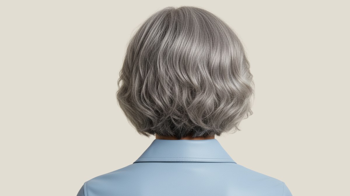 De haarkleur is een natuurlijke grijstint met diepte en dimensie. Er is een prachtige meerkleurigheid, met verschillende schakeringen van zilver, tin en zacht houtskoolgrijs die moeiteloos in elkaar overlopen. De donkerdere ondertonen schijnen subtiel door de lichtere zilverkleurige lokken heen en creëren zo een rijke, gelaagde kleurdynamiek die voorkomt dat het grijs eentonig oogt.