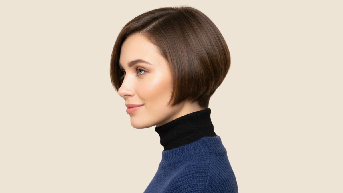 Dit is een eigentijdse interpretatie van de klassieke bob: een gegradeerde of duikende bob die korter is aan de achterkant en iets langer aan de voorkant, waardoor een subtiele hoek ontstaat die het silhouet een moderne uitstraling geeft.