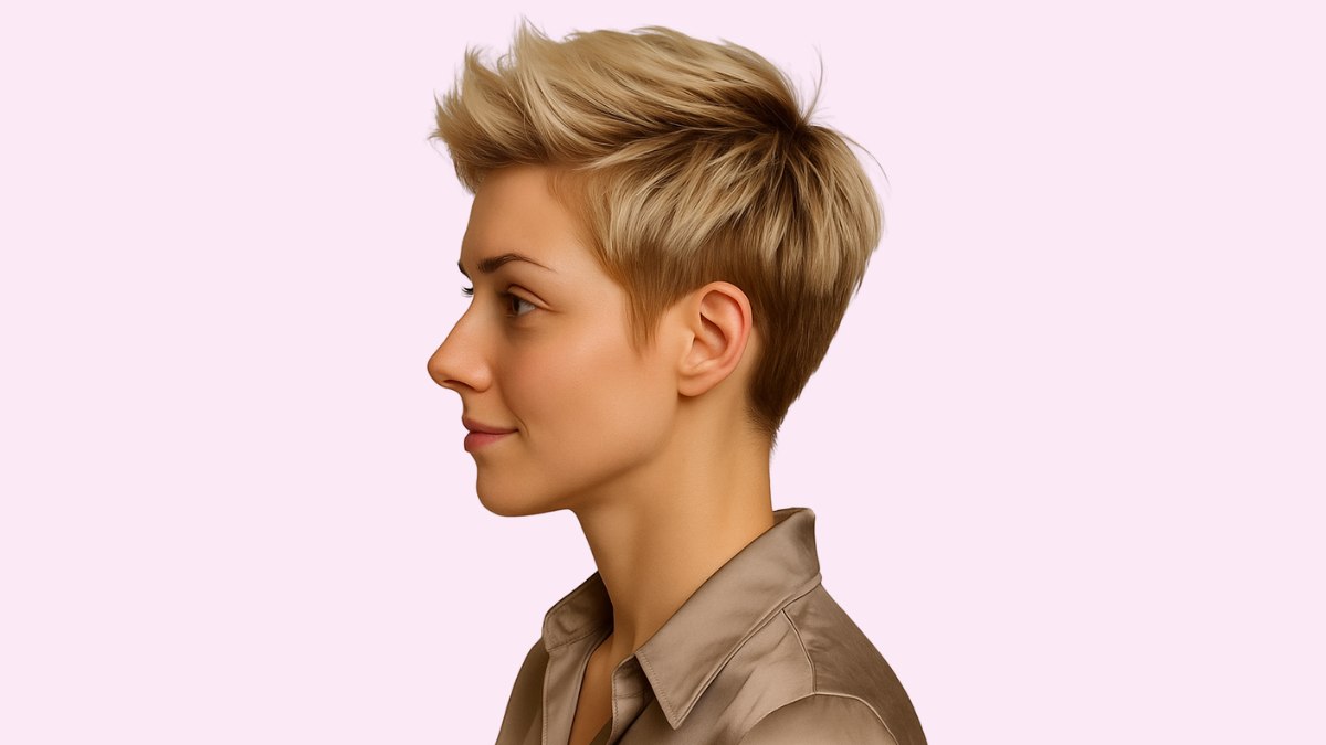 Laten we even stilstaan bij hoe schitterend deze volumineuze kuif is! Dit korte kapsel is pure zelfverzekerdheid in haarvorm: gedurfd, prachtig en gegarandeerd een blikvanger waar je ook komt.