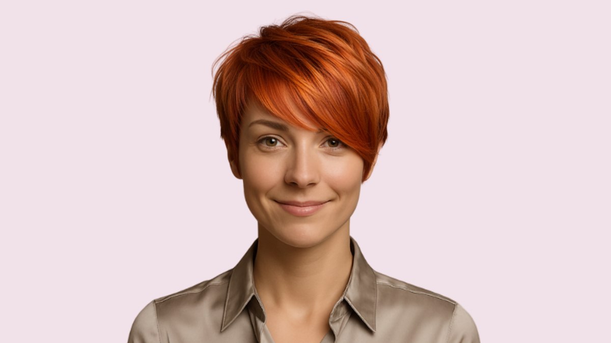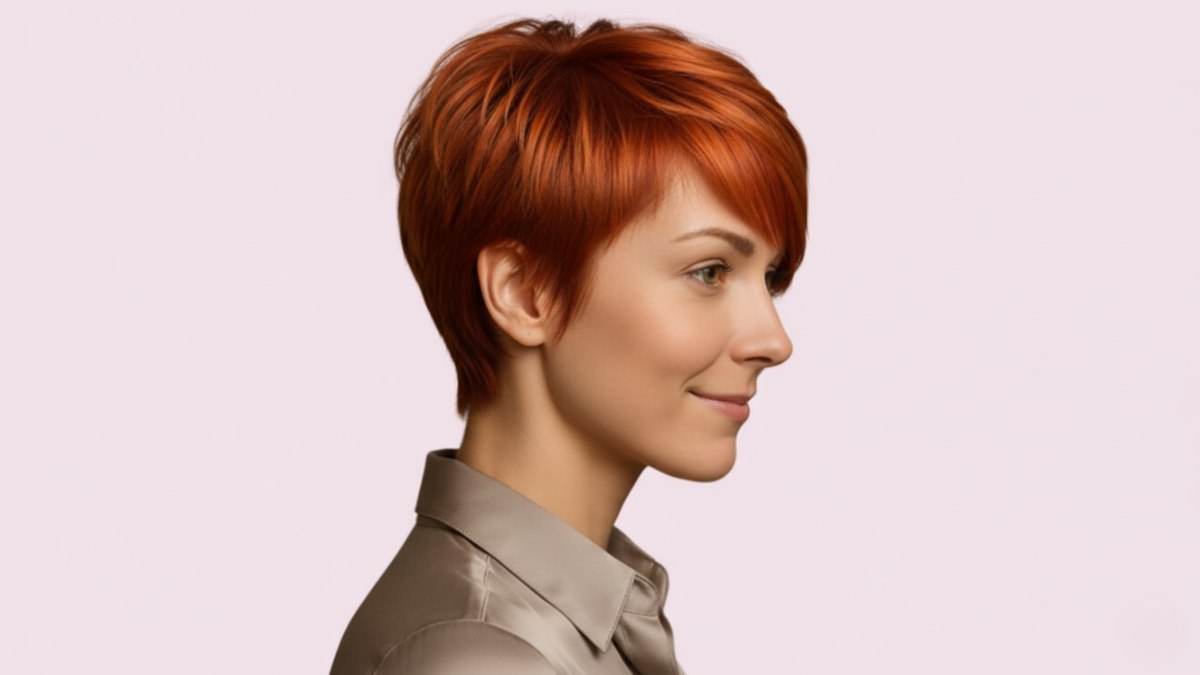 Bereid je voor om iedereen te verrassen met deze prachtige koperkleurige precisiesnit. De herfst in kapselvorm! Deze warme, rijke kleur voelt als de gezelligste trui, maar dan voor je korte haar.