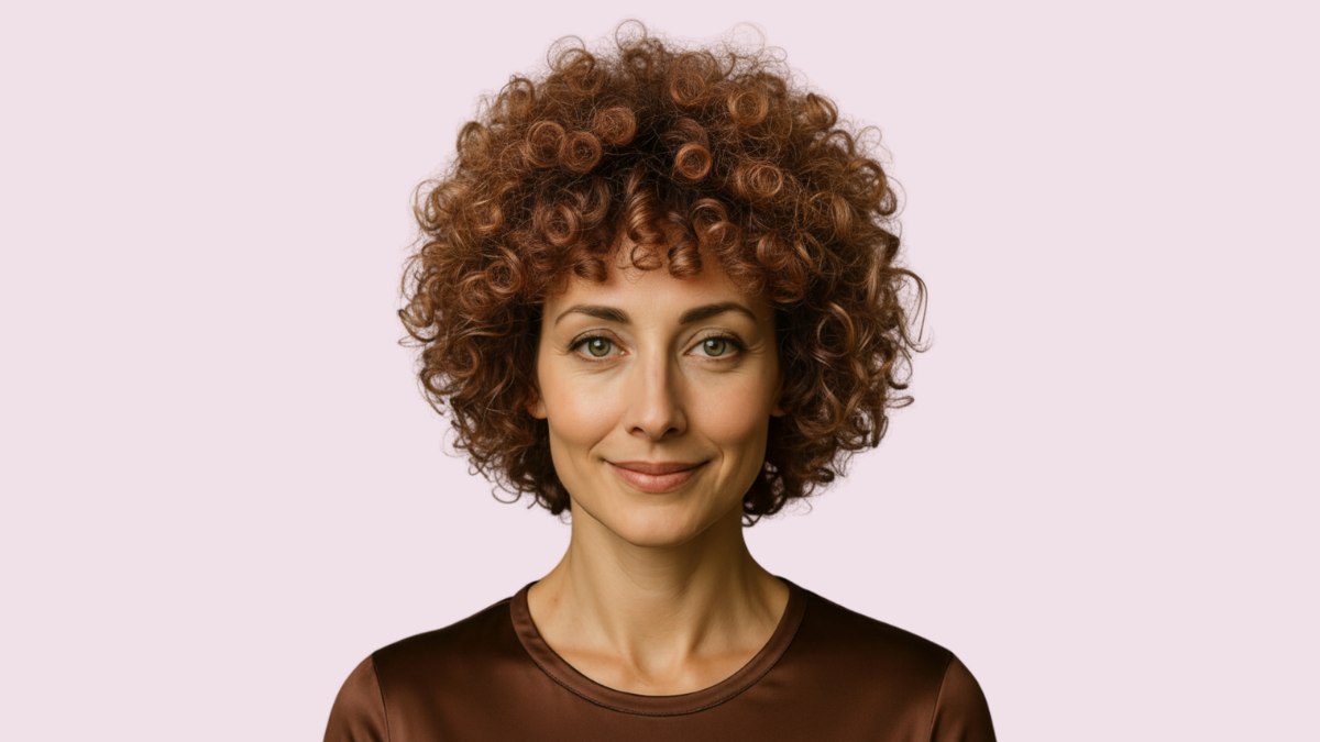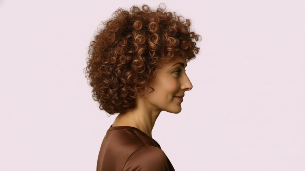 Ook de haarkleur speelt een grote rol. Warme, rijke bruintinten geven diepte en dimensie, met natuurlijke highlights en lowlights die de textuur versterken in plaats van ermee te concurreren. Geen vlakke, eendimensionale kleur, maar een prachtig palet dat de krullen extra tot hun recht laat komen.