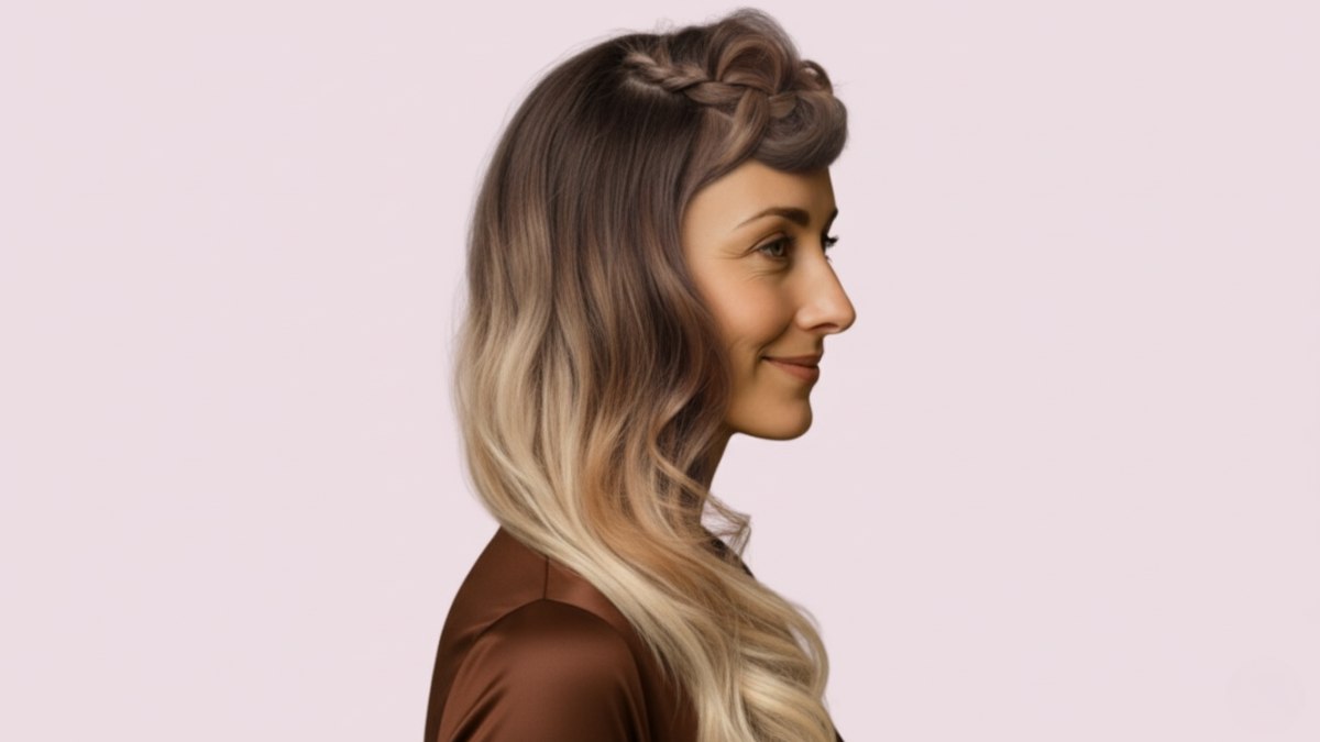 Het creëren van dit kapsel is pure kunst. De voorste delen worden glad geborsteld en zorgvuldig opgerold en vastgezet met onzichtbare schuifspeldjes. De rest van het haar wordt glad naar één kant gebracht, wat een asymmetrische, dramatische flow geeft.