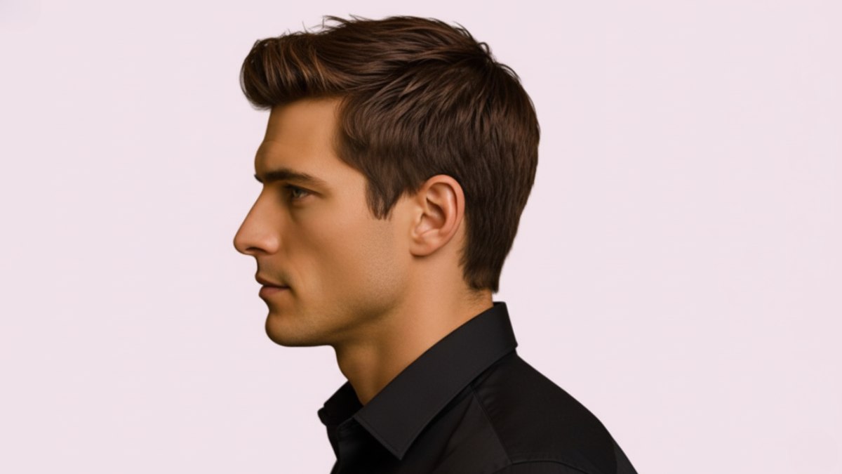 Hier is een stijl die bewijst dat een kort herenkapsel net zo dynamisch kan zijn als lange lokken. Deze look draait om gecontroleerde chaos: het lijkt eenvoudig, maar elke pluk is precies geplaatst.