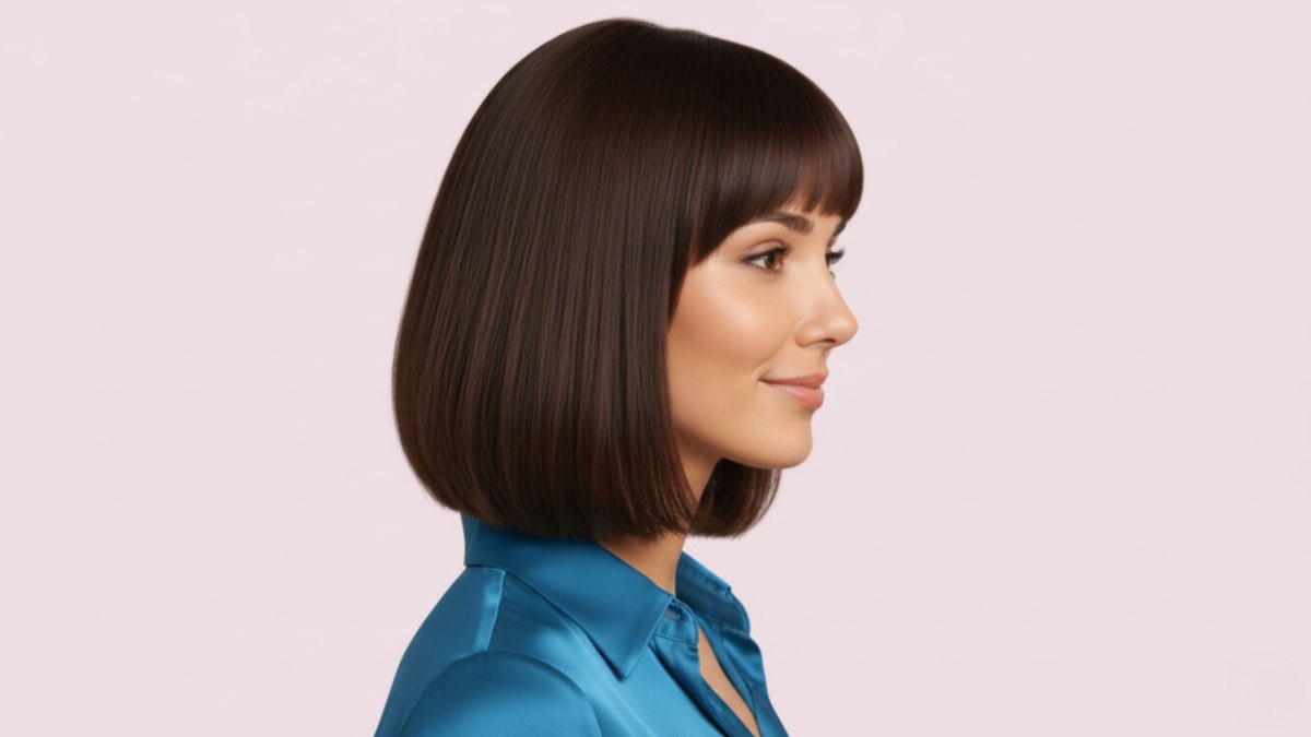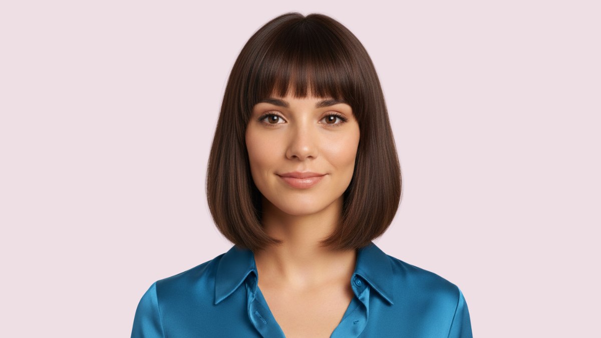 Soms maak je het sterkste statement met strakke, eenvoudige lijnen, en dat is precies wat deze stompe bob biedt. Pure precisie, een geometrische vorm die modern en chic oogt. De snit valt exact op kraaghoogte en vormt een perfecte horizontale lijn rond nek en gezicht. De rechte pony voegt extra verfijning toe.
