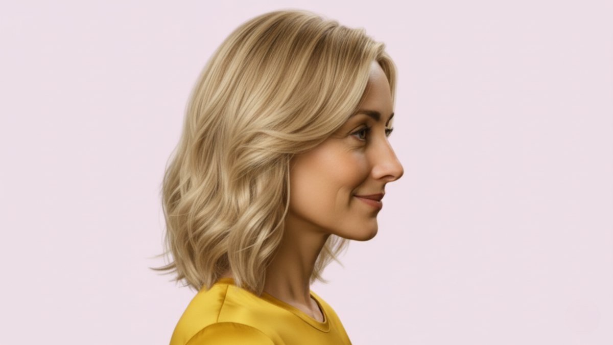 Dit is het kapsel-equivalent van een perfect getailleerde blazer: klassiek, geraffineerd en elegant. Deze schouderlange blonde haarstijl draait volledig om stijlvolle eenvoud, en bewijst dat de mooiste looks soms juist natuurlijk ogen. Het halflange haar heeft een zachte golf die lijkt alsof je ermee geboren bent, al is er beslist techniek nodig om het zo te laten lijken.