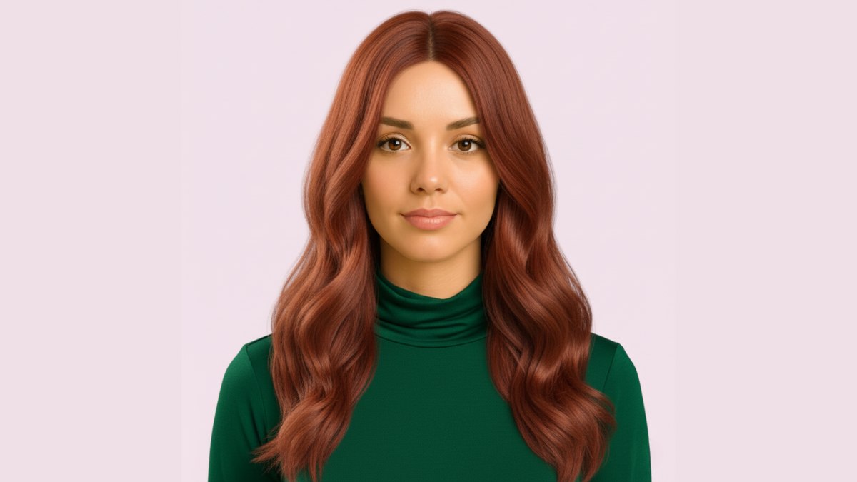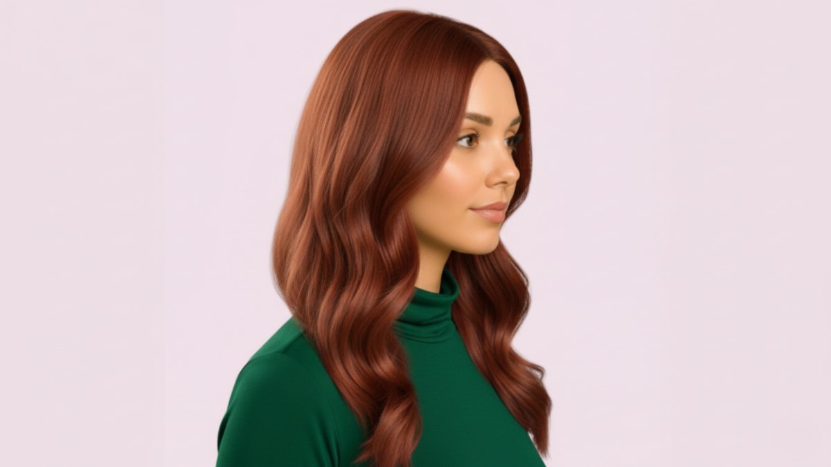 Ook de haarkleur speelt een grote rol. De prachtige kastanjebruine tint met subtiele highlights vangt het licht precies goed, waardoor elke golf meer diepte krijgt. De donkerdere aanzet loopt geleidelijk over in warmere, lichtere tonen, wat extra dimensie geeft.