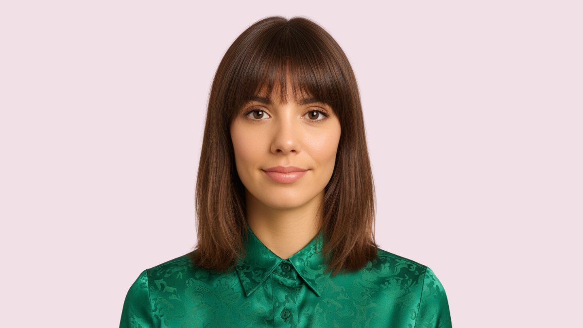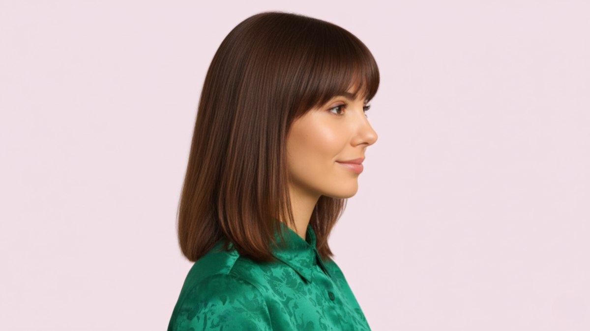 De pony heeft precies genoeg gewicht om mooi te vallen zonder zwaar te lijken en verbergt kleine voorhoofdsonvolkomenheden terwijl hij je ogen accentueert.