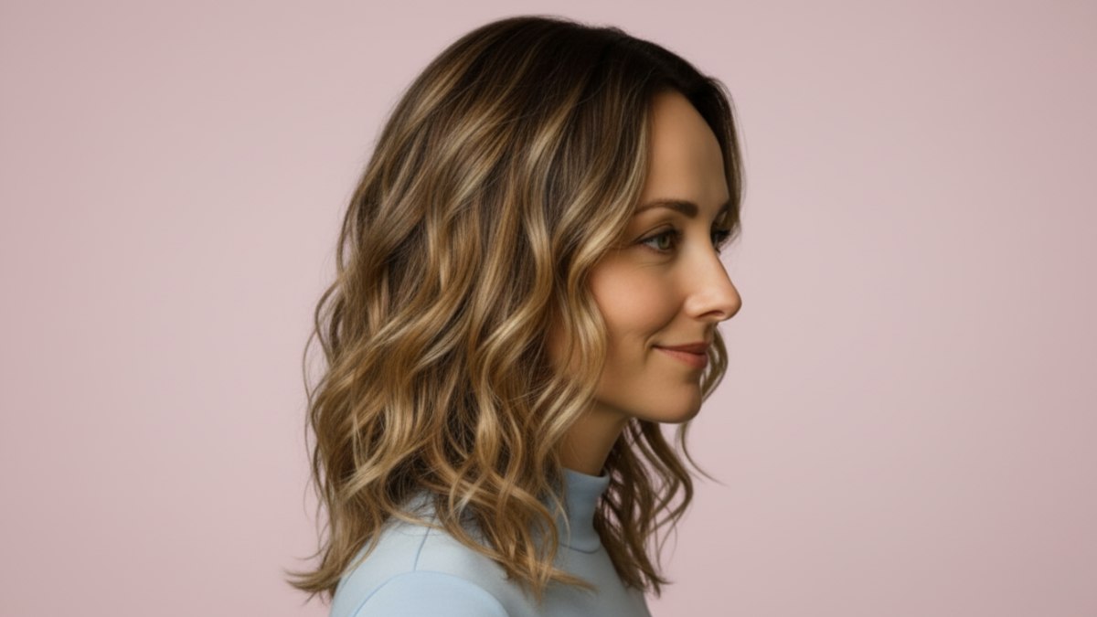 De kleurtechniek heet balayage. In plaats van traditionele folies worden de highlights met de hand ingeschilderd voor de meest natuurlijke overgang. Het resultaat is haar met diepte, beweging en een multidimensionale glans die het licht vanuit elke hoek vangt.