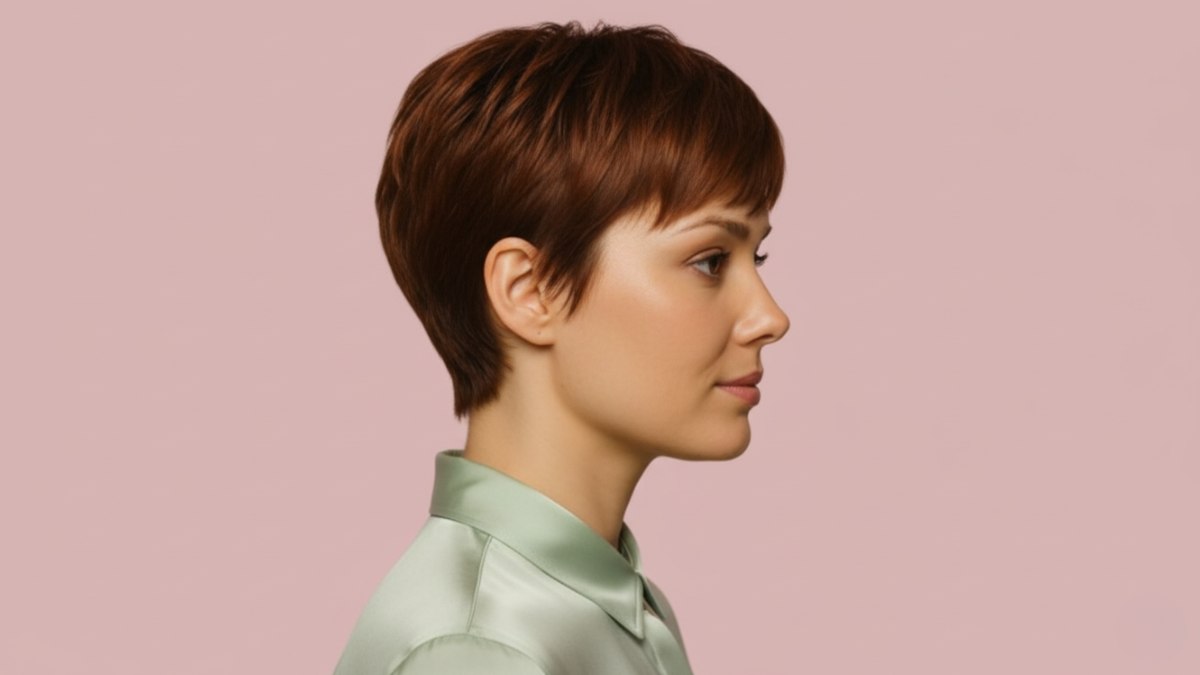 Ondanks de korte lengte biedt deze pixie volop veelzijdigheid. Wil je een strakke, gepolijste look? Een beetje stylingproduct kan het bovenste deel gladstrijken en de scherpe lijnen van het kapsel extra benadrukken. Voor een meer relaxte, stoere look kun je de lagen wat warriger maken met lichte pomade of texturiserende spray voor dat nonchalante, casual gevoel. En de zijwaarts vallende pony? Die is ook flexibel—speld hem naar achteren voor een verfijnde, chique uitstraling, of zet hem rechtop voor een gedurfde, runway-ready finish.