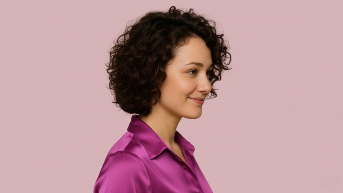 Dit kapsel is ongelooflijk veelzijdig en past zich moeiteloos aan verschillende gezichtsvormen aan. De zachte krullen verzachten een sterke kaaklijn, terwijl de hoogte bovenop ronde of ovale gezichten verlengt. De snit, die net boven de kaaklijn eindigt, flatteert zowel hartvormige als hoekige gelaatskenmerken. Het is een echte kameleon—aanpasbaar en universeel flatterend.