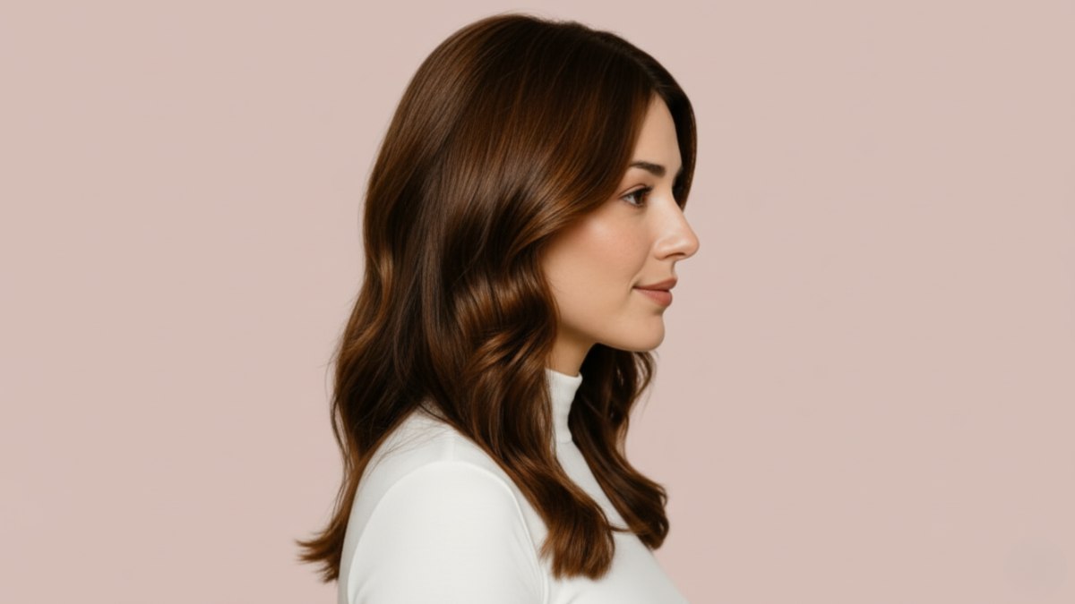 De haarkleur is even aantrekkelijk: een rijk, multidimensionaal bruin met warme ondertonen. Op het eerste gezicht lijkt het misschien een uniforme tint, maar bij nadere inspectie toont het subtiele variaties die diepte aan de kleur toevoegen. Subtiele karamelachtige highlights vermengen zich met diepere chocoladetinten, wat zorgt voor een prachtige licht- en schaduwwerking door de golven heen. Deze dimensionale kleuring versterkt het golvenpatroon, waardoor elke kromming en bocht levendiger wordt.