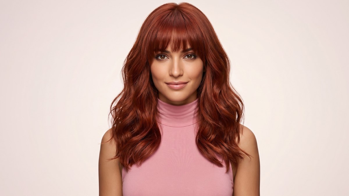 Dit kapsel is voor een vrouw die niet bang is om op te vallen en haar haar voor zich wil laten spreken. De haarkleur is het eerste wat de aandacht trekt: een diepe karmozijnrode tint die ergens tussen kastanjebruin en echt rood in zit, van aanzet tot punt.
