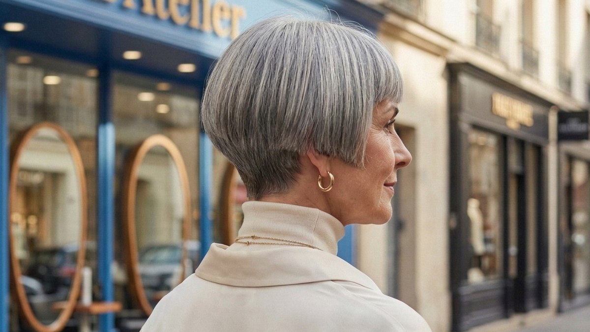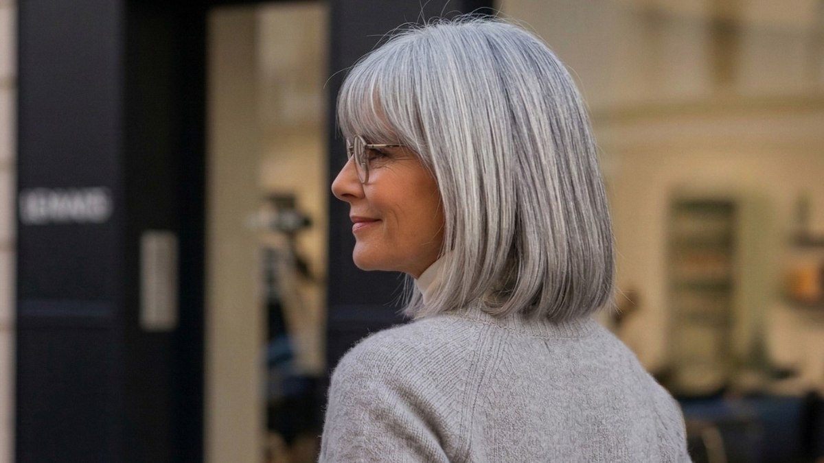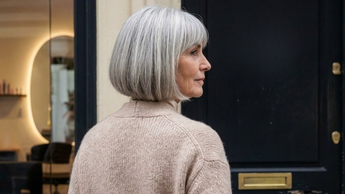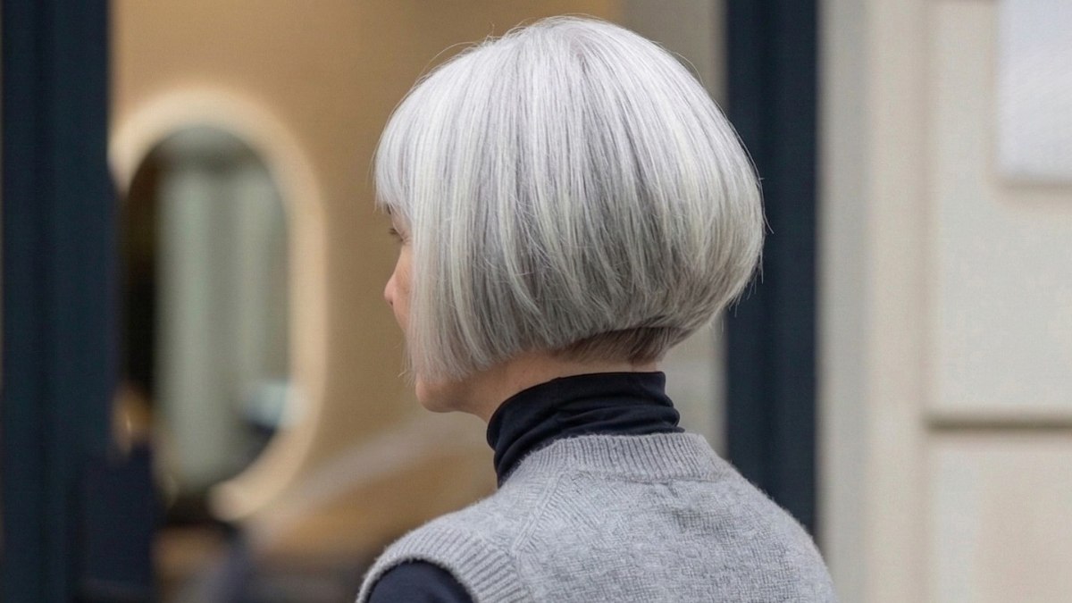 Er is iets onweerstaanbaar tijdloos aan een perfect geknipte bob tot op de kin, en deze versie laat daar geen twijfel over bestaan. Precies onder de kaaklijn geknipt, met rechte punten die een strakke vorm creëren die het zilvergrijs alle ruimte geeft om te schitteren.