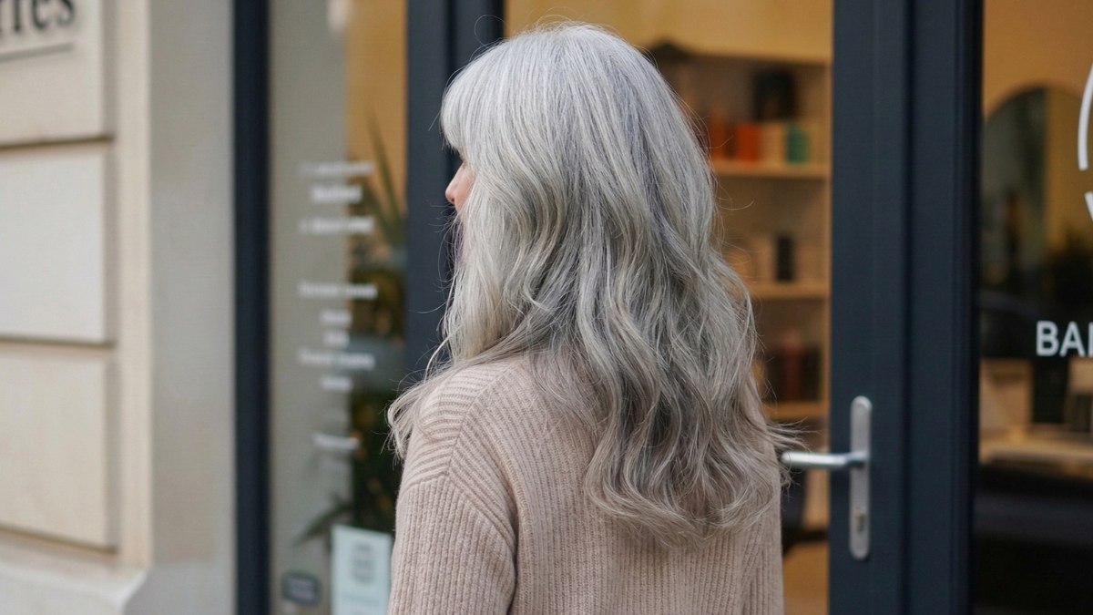 De haarkleur is een multidimensionaal zilvergrijs met subtiele nuances die extra diepte toevoegen. Het soort tint dat in natuurlijk licht echt tot leven komt en bij elke hoofdbeweging net iets anders lijkt.