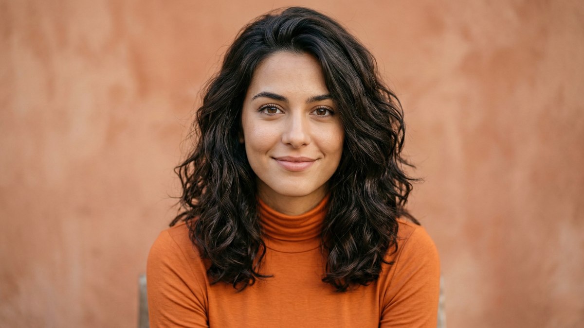 De krullen waren vol en vrij, wat haar een warme en vriendelijke look gaf. Haar donkere ogen en zachte glimlach maakten de hele stijl erg uitnodigend. Dit was natuurlijk haar op z’n best: vrolijk en vol karakter.