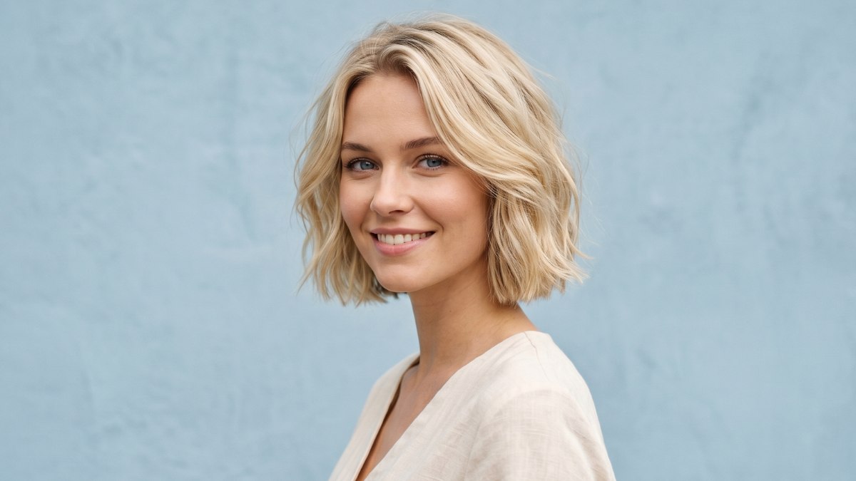 Warm goudblond, zachte golven en een coupe die net onder de kin valt: deze combinatie is eigenlijk de definitie van een zomers kapsel. Deze blonde golvende bob is een stijl die er tegelijkertijd verzorgd en volledig ontspannen uitziet.