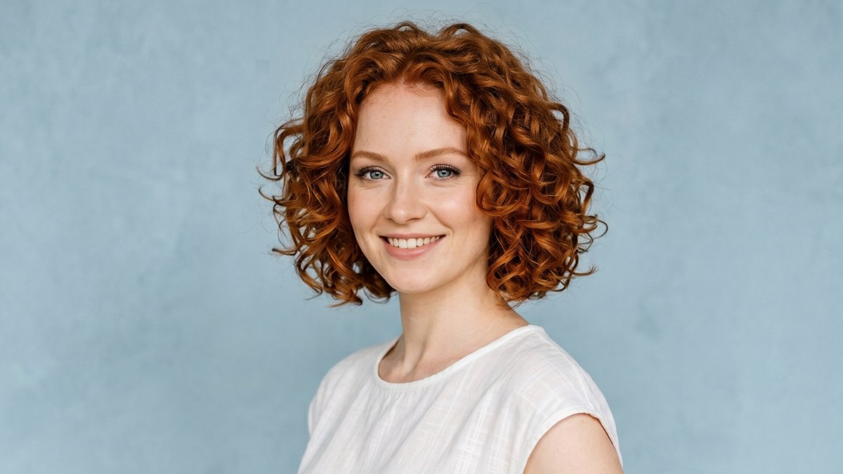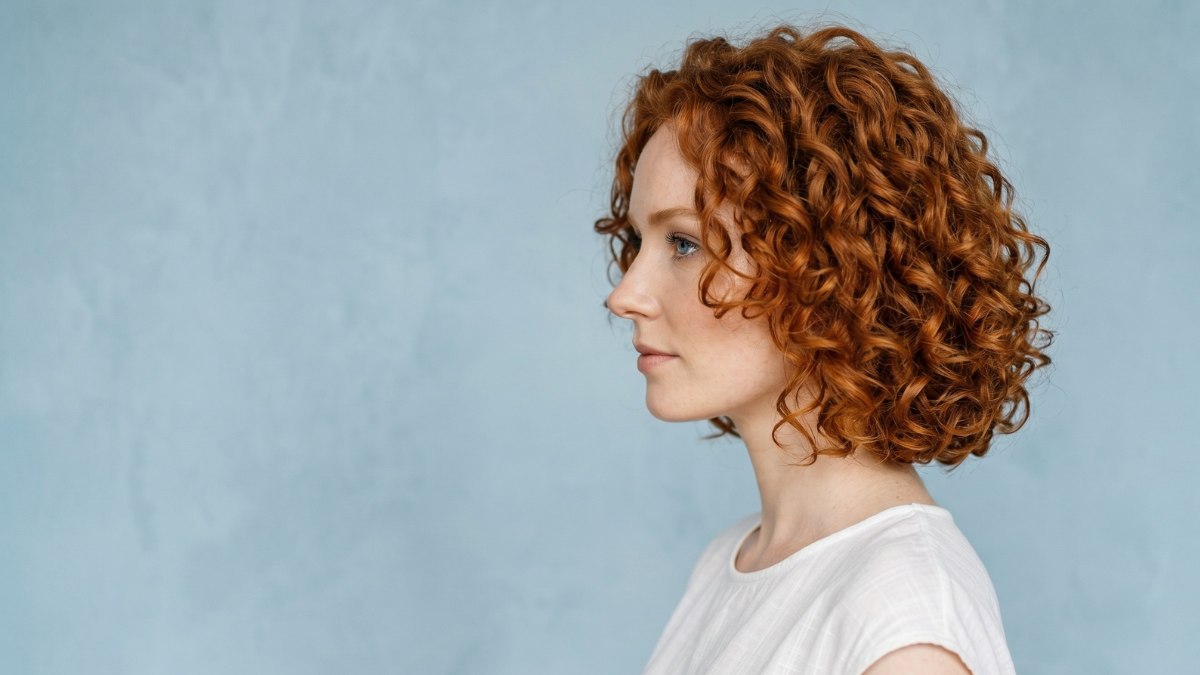 De levendige koperrode kleur is warm en rijk, en vangt het licht op een manier waardoor de krullen bijna lijken te stralen. En die krullen! Strak, veerkrachtig en prachtig gedefinieerd vormen ze een ronde, volle vorm die het haar een gevoel van energie en beweging geeft.