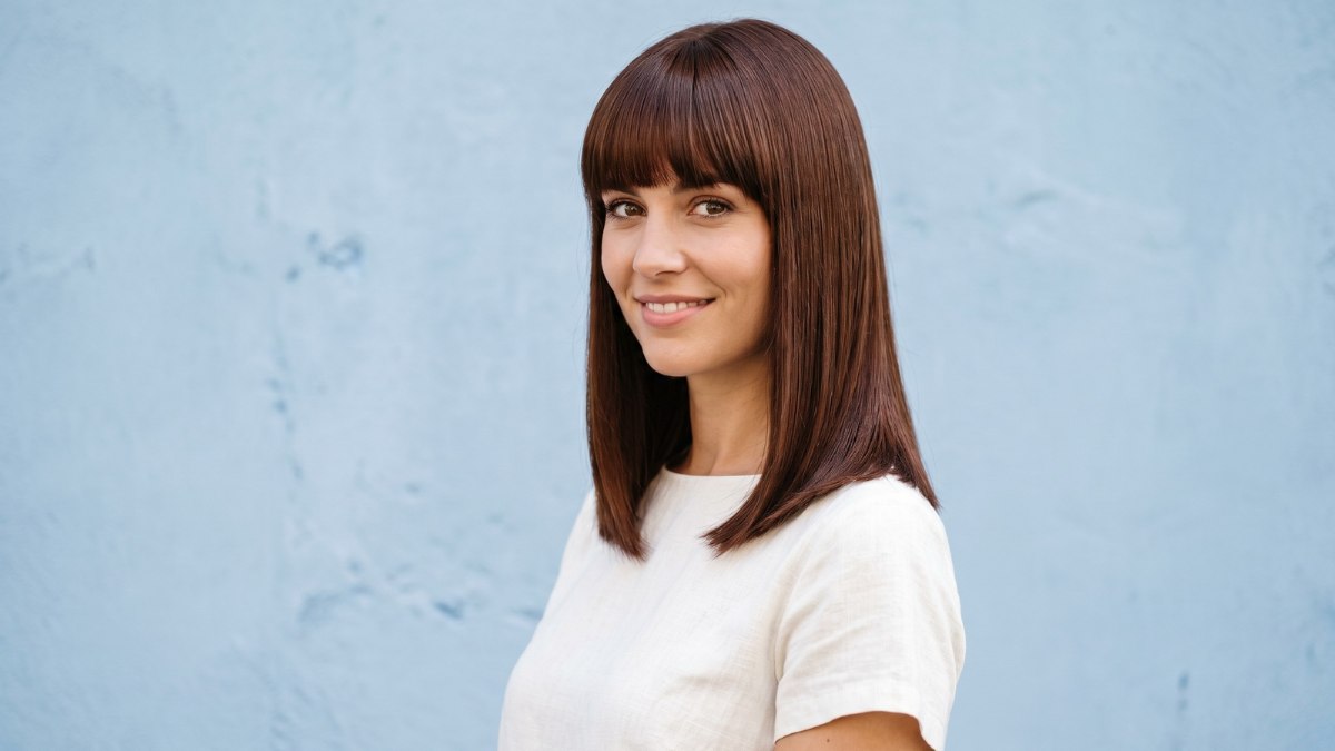 Vanuit praktisch oogpunt is dit een kapsel dat wel wat onderhoud vraagt. Steil en glad haar zoals dit heeft baat bij een goede hittebeschermer en een stijltang of föhnborstel om die strakke look te bewaren. De pony zal regelmatig bijgeknipt moeten worden om op de juiste lengte te blijven en die perfecte rechte lijn te behouden.